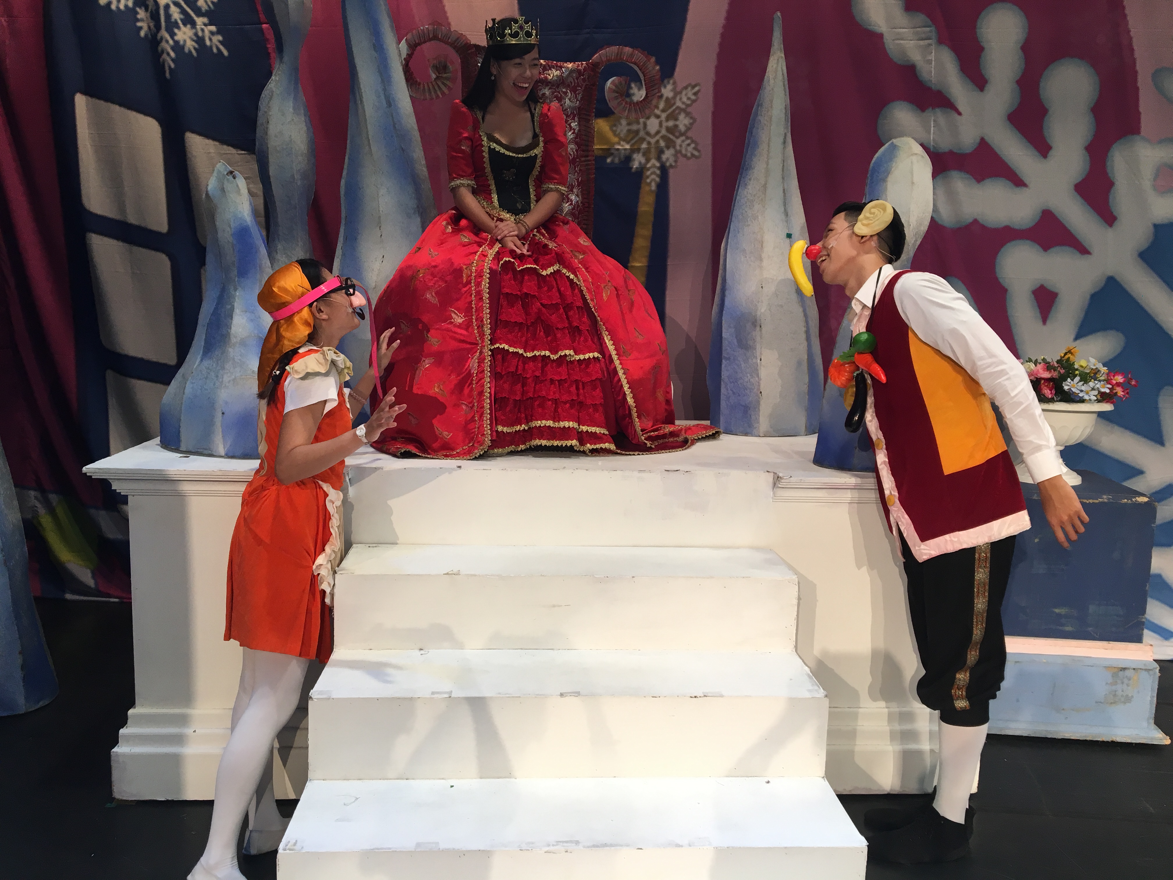 頂著誇張造型、身穿水果裝混搭服裝的皇后,得意洋洋的走在人群中,期待著人民們的讚美。