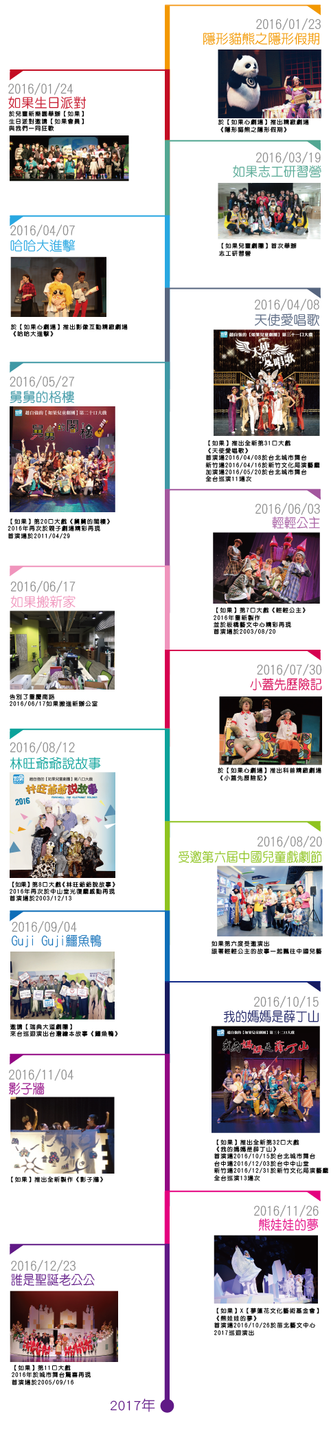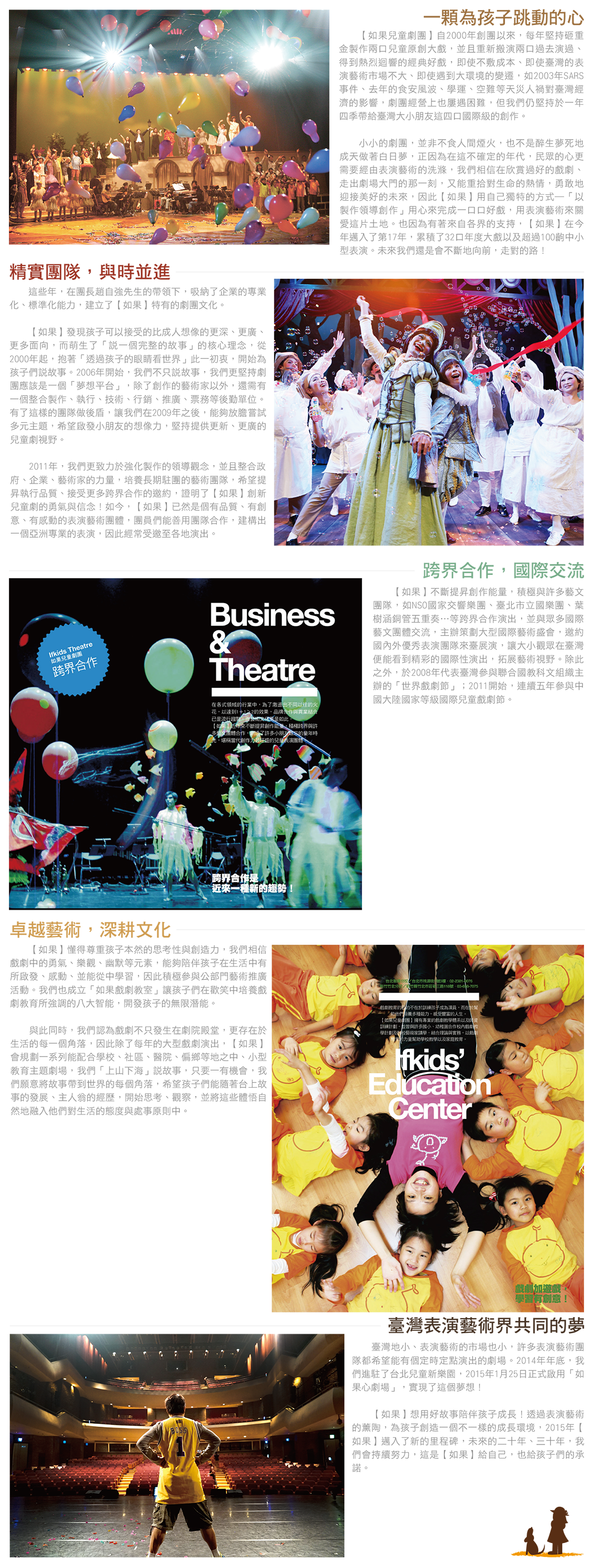 進駐華山文化創意園區經營華山如果兒童藝術館,每月推出新劇目,每週六日,一天3場 (為期10個月)期間共5萬人次